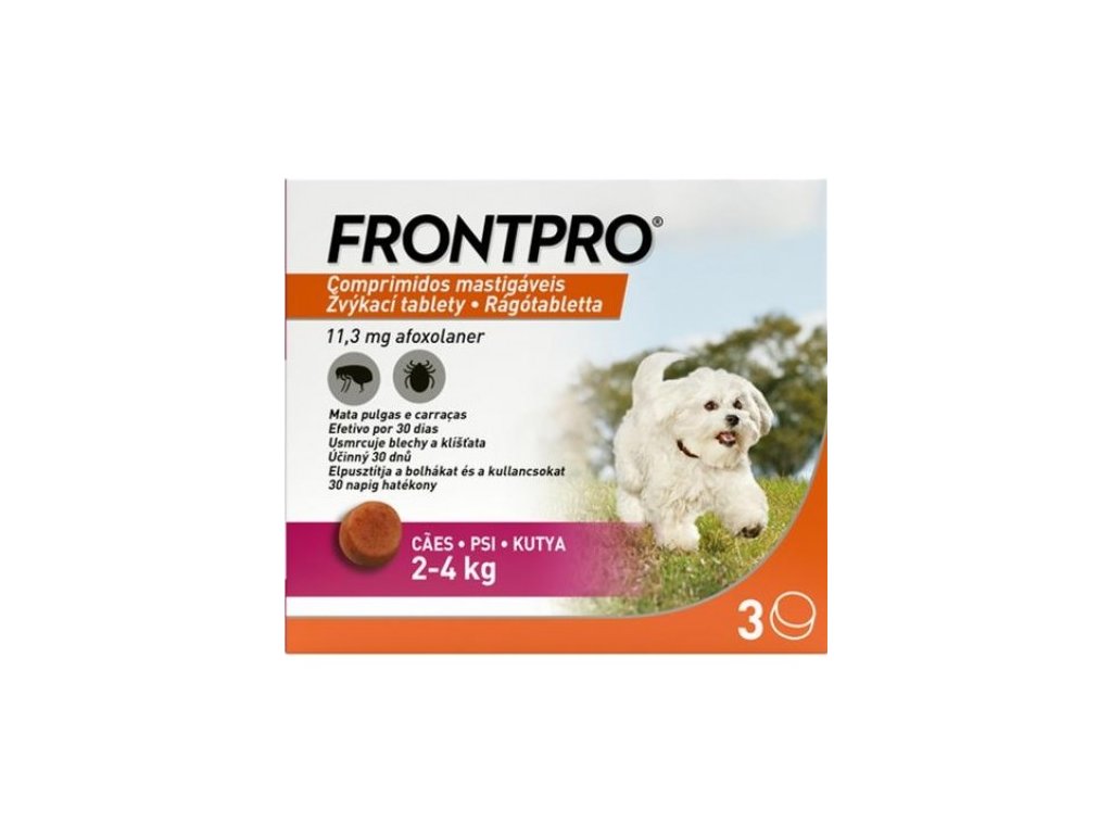 FRONTPRO XS 11 mg žuvacie tablety pre psy 2–4 kg, 3 tbl. (ako Nexgard)