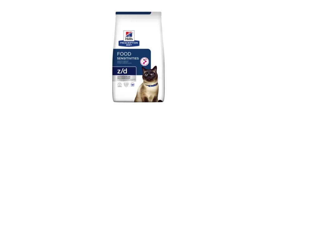 Krmivo pre mačky PRESCRIPTION DIET z/d značky Hill‘s je kompletné dietetické krmivo pre domáce zvieratá na zníženie neznášanlivosti voči zložkám krmív u dospelých mačiek. Toto krmivo obsahuje vybraný zdroj uhľohydrátov a zdroj hydrolyzovaných bielkovín.