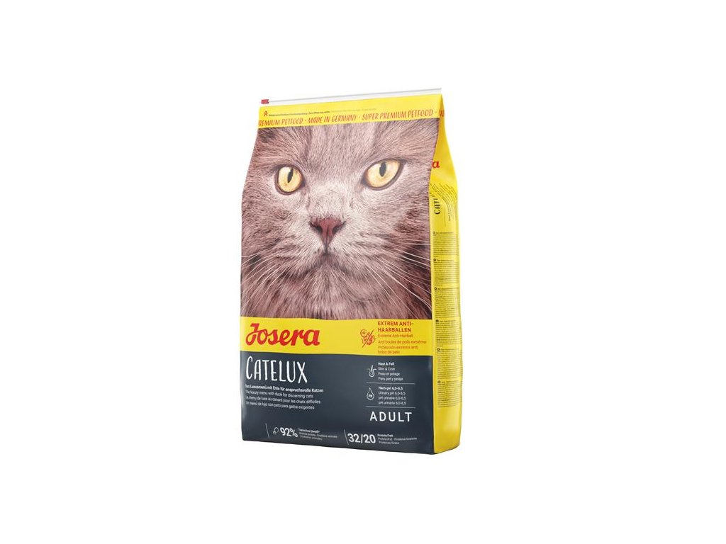Popis: Krmivo s kačicou a zemiakom je ideálne pre gurmánov. Catelux obsahuje vlákninu, ktorá podporuje trávenie prehltnutých chlpov.
