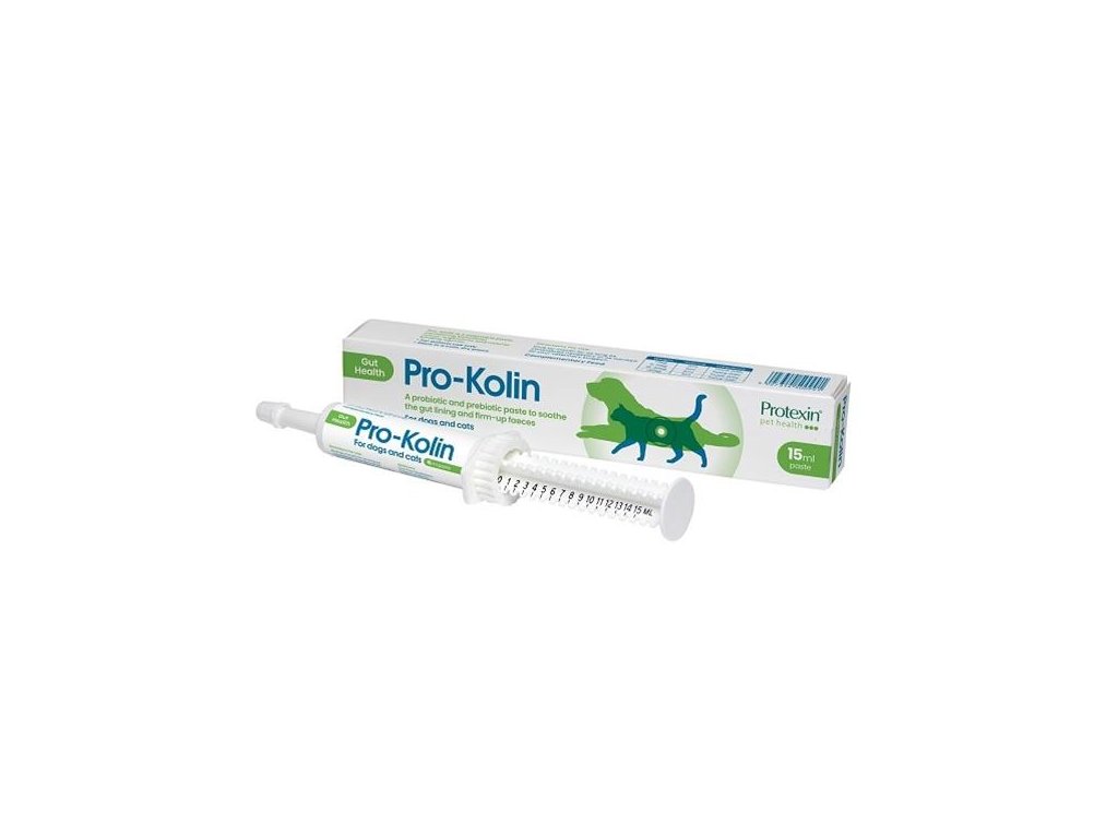Probiotický prípravok pre psy a mačky, obsahujúci prospešnú črevnú mikrobiálnu kultúru, prebiotikum, kaolín a pektín. Dodáva sa vo forme pasty, vyznačujúcej sa dobrou chuťou a bezproblémovým príjmom. Prospešné mikroorganizmy obsiahnuté v prípravku Pro-Kolin sa vyskytujú prirodzene v črevách všetkých zdravých zvierat. Tieto mikroorganizmy kolonizujú nedospelé črevo alebo znovu osídľujú a upravujú pomery v narušenom čreve. Zároveň bránia usídleniu patogénnych mikroorganizmov mechanizmom, ktorý sa popisuje ako „kompetitívna exklúzia“. Tento produkt obsahuje naviac kaolín ako prírodnú vyväzujúcu substanciu a pektín, ktorý upokojuje črevnú výstelku v priebehu tráviacich porúch. Pro-Kolin pre psy a mačky bol vyvinutý ako liečivo prvej voľby pri miernejších formách enteritíd.