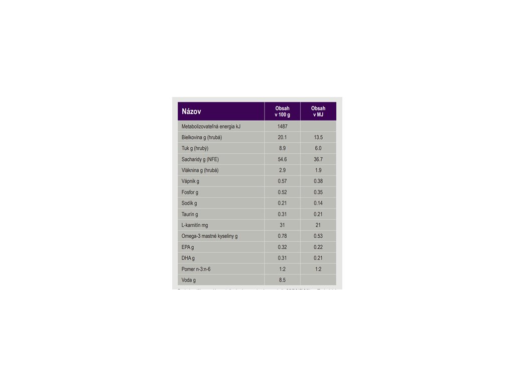 Kompletné a vyvážené krmivo má mierne zvýšený obsah vlákniny, čo trochu znižuje jeho energetickú denzitu. Pri starších psoch s obmedzenou spotrebou energie tak podporuje udržanie ideálnej telesnej hmotnosti.